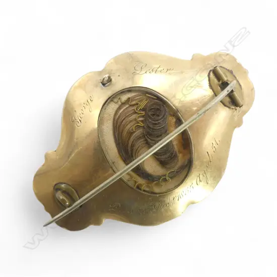 2 VICTORIAN PINCHBECK MOURNING BROOCHES. BOTH ENGRAVED 1855