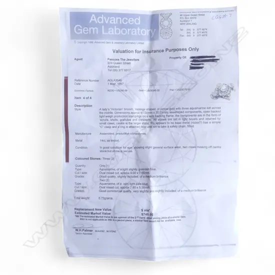 ANTIQUE 14CT AQUAMARINE BROOCH, 6.73gms with valuation