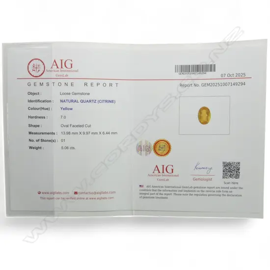 OVAL CUT CITRINE, 5ct, AIG CERT