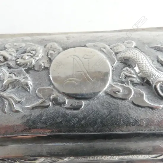 CHINESE SILVER BOX w. DRAGON DESIGN STAMPED HUNG CHONG & CO 124gms 120x50x55mm