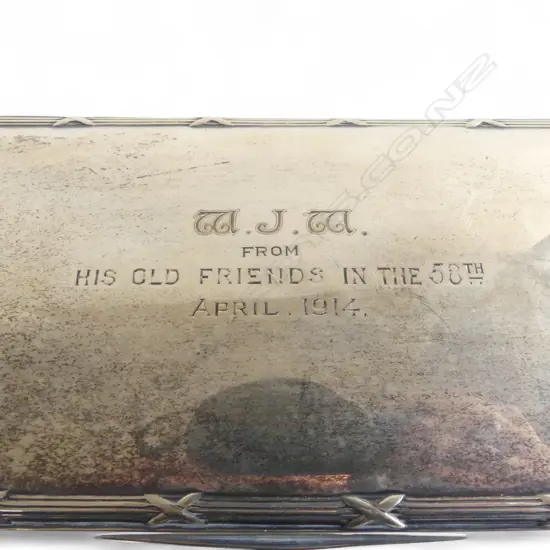SILVER LARGE CIGARETTE BOX Birmingham 1913 58th Regt. presentation W.195mm