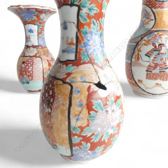 SET OF 3 OLD JAPANESE IMARI VASES smaller pair faulted H.285mm
