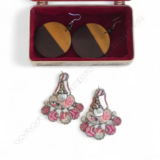 AUSTRALIAN GEOGRAPHIC PEN SET in wooden case + SILVER PLATE JEWELLERY BOX & 2 PR EARRINGS