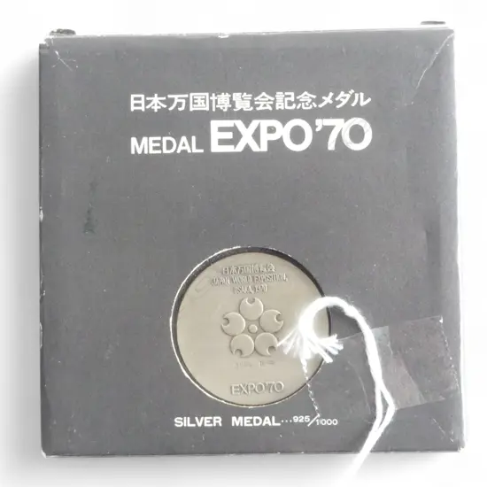 OSAKA JAPAN WORLD EXPOSITION 1970 .925 SILVER MEDAL IN ORIGINAL BOX & CASING 18.50gms