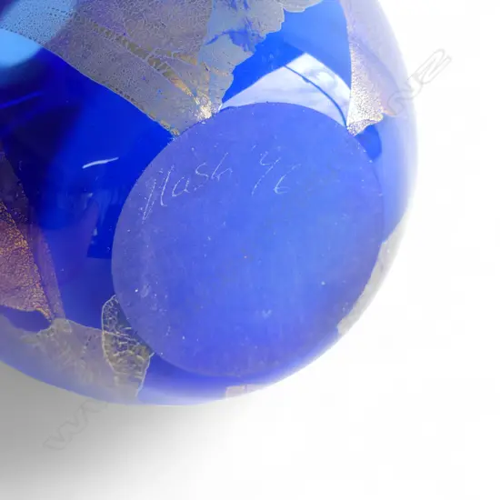 GARRY NASH BLUE GLASS VASE gold & silver leaf decoration, signed & dated '96 H.220mm