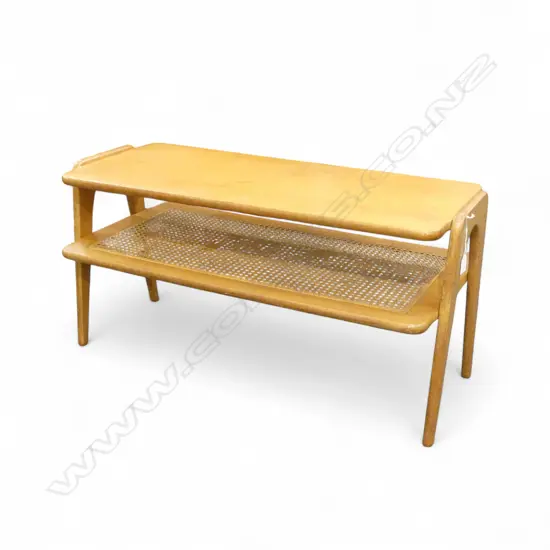 MCM OAK & RATTAN COFFEE TABLE 910x425x460mm