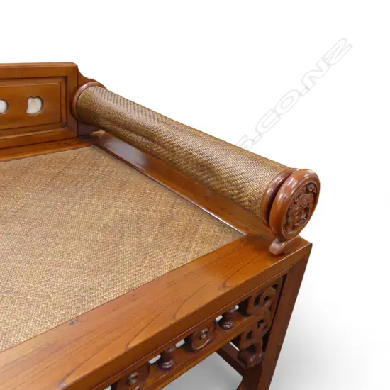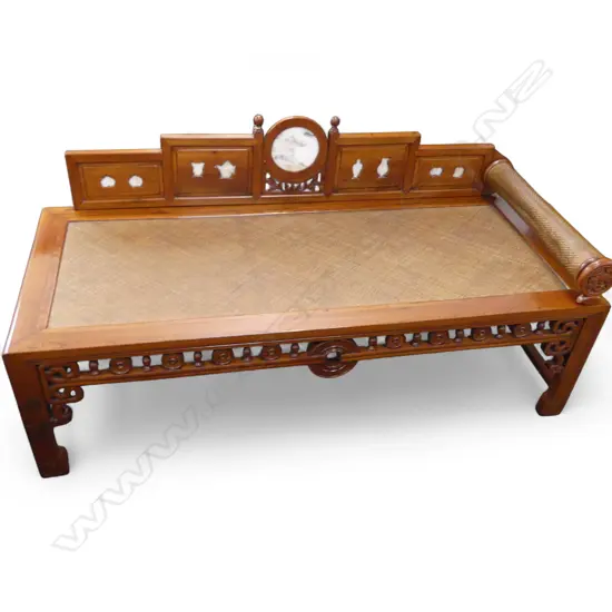 Opium Bed with marble panels and rattan base and pillow, Zhejiang province, c.1895 1930 x 830 x 980mm