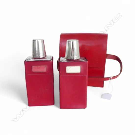 VINTAGE RED LEATHER 'HOMA' TRAVEL CASE 2PCE GLASS & SHOTS