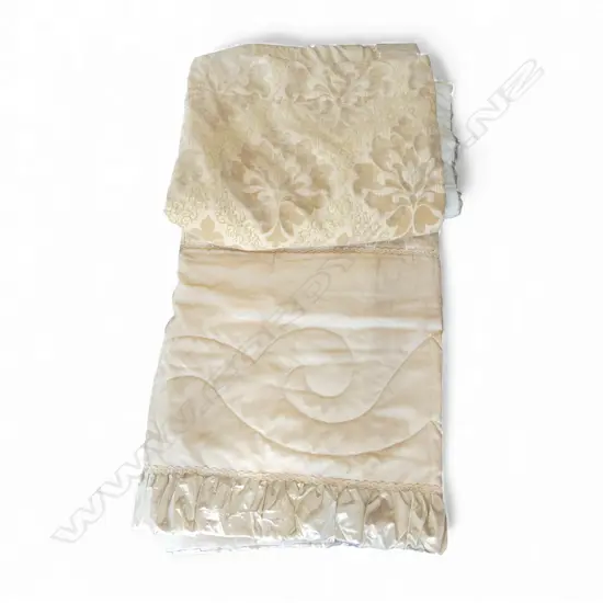 DESIGNER BEDSPREAD IN GOLDEN FABRICS 2.75 X 2.75 (slight sun damage to bottom edge)