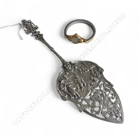 SILVER PLATED SERVING SPOON (TESTED) L.220mm + GP LADIES WRIST WATCH