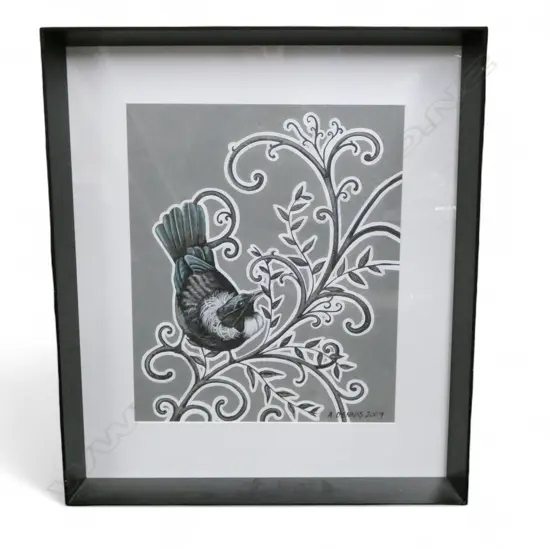 BRONZED BRASS SCULPTURE; FACE HELD BY HAND w. BIRDS ABOVE H.470mm