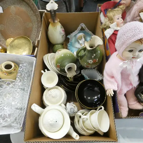 FAUX FUR CAPE + HATS + MOHAIR SCARF + vintage children's fabric pce + boxed clothing pces etc