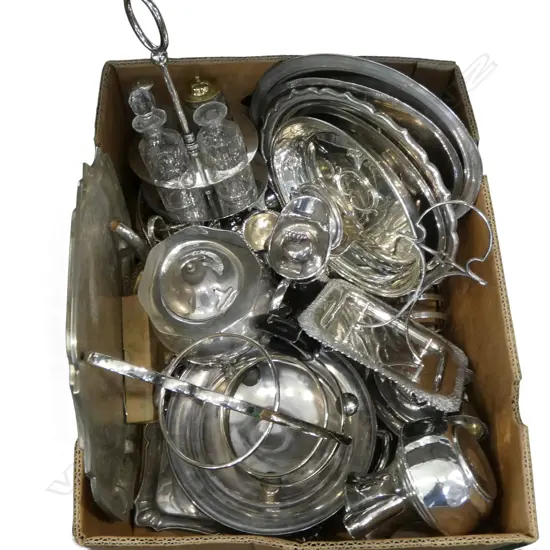 ASST. SILVER PLATE CUTLERY, NAPKIN RINGS + SILVER PLATE TODDY LADLE BALEEN HANDLE