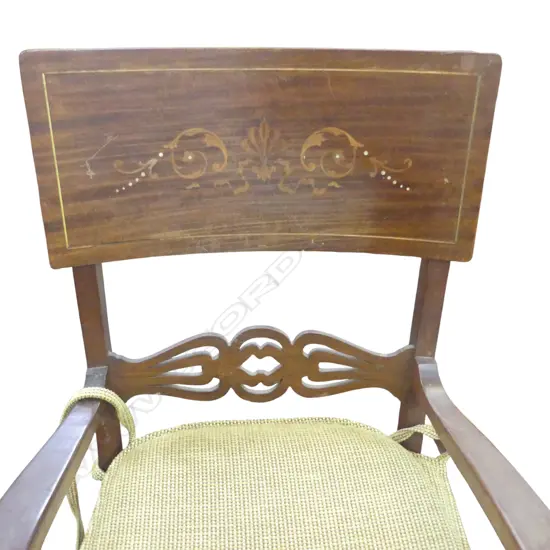 EDWARDIAN MAHOGANY CARVER CHAIR w. INLAID BACK H.1070mm