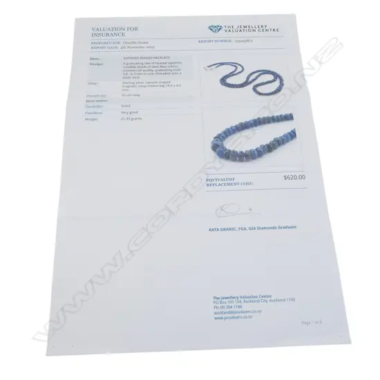 SAPPHIRE BEADED NECKLACE L.550mm w. VALUATION