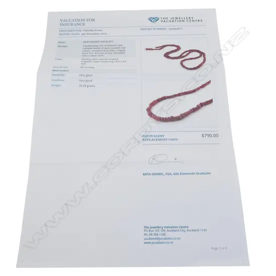 RUBY BEADED NECKLACE L.590mm w. VALUATION