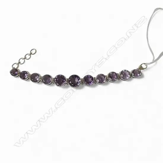 SILVER & AMETHYST BRACELET; STONES ARE GRADUATED