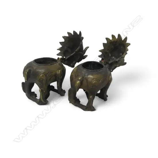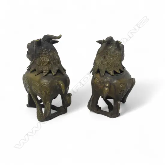 PR BRONZE ANTIQUE CHINESE FOO DOG INCENSE BURNERS H120MM