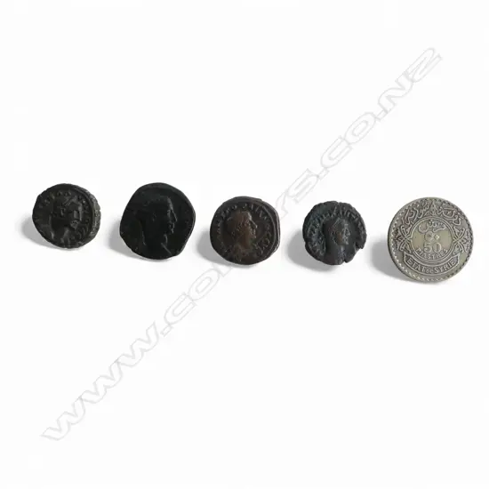 4 ROMAN COINS; CLAUDIUS, SEVERUS, DIOCLETIAN, GORDIAN III & 1 SYRIAN 1929 COIN