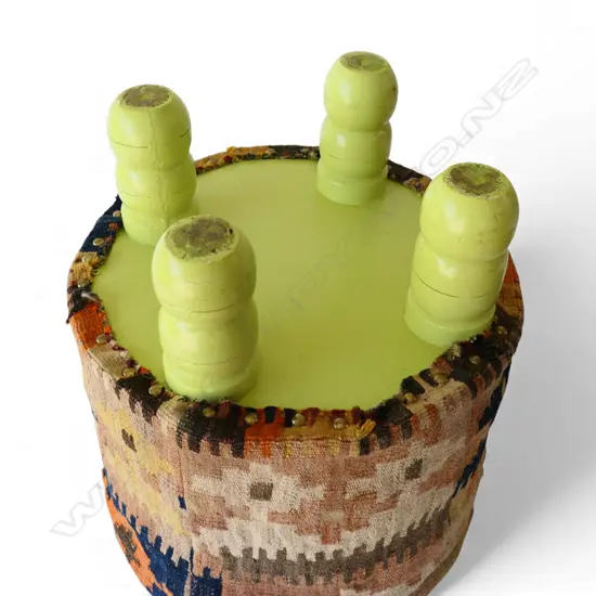 AFGHAN KILIM STOOL, LIME GREEN WOODEN BASE, H.400mm Dia.380mm