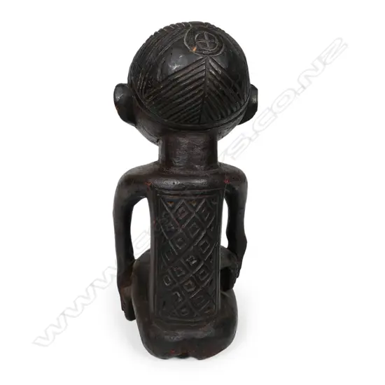 Congo, in sitting position, traditional carved Kuba patterns and coiffure. H.320mm.