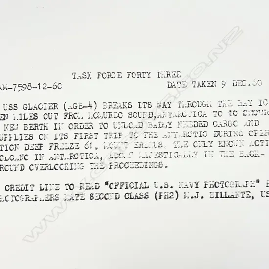 VINTAGE PHOTO: 'Task force Forty Three. Date taken 9 Dec. 60 USS Glacier Breaks its way through .... vintage photo....
