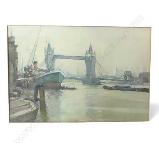VINTAGE COLOR LITHOGRAPH PRINT OF THE RIVER THAMES BY MARC MARKOVITCH,200 X 300MM