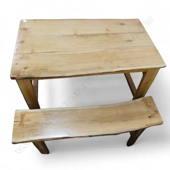 Craftsman made Japanese Maple Table & bench set with live edge boards - some Rimu trim - made with no screws or nails - traditional; mortise and tenon/doweled butt joints... butterfly join to bench top. Dimensions in mm. Table: 1175 length x 720 wide x 760 height. Bench: 1175 length x 270 wide x 460 height.