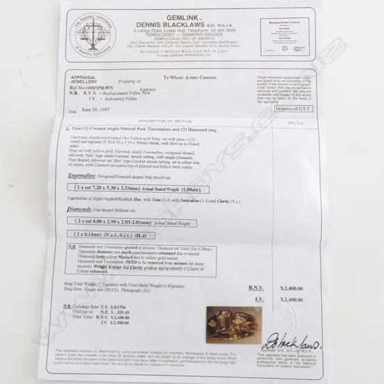 18ct Y/GOLD & PINK TOURMALINE DIAMOND DRESS RING 6.7gms SIZE N 1/2 VALUATION $ 2400.00