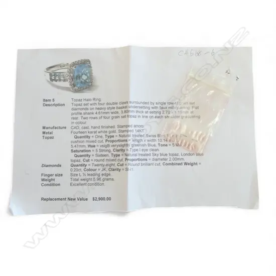14ct W/GOLD BLUE TOPAZ HALO RING, 5.96gm, valuation SIZE N