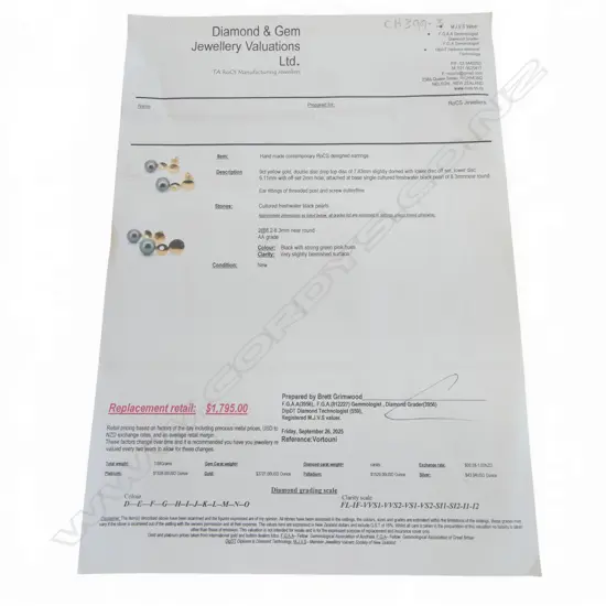 CONTEMPORARY 9CT GOLD AND BLACK PEARL EARRINGS AND PENDANT SET (valuation)