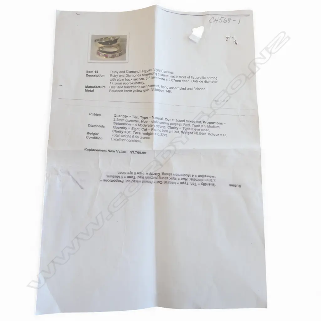 14ct RUBY & DIAMOND HUGGIE STYLE EARRINGS, 6.50gm, valuation