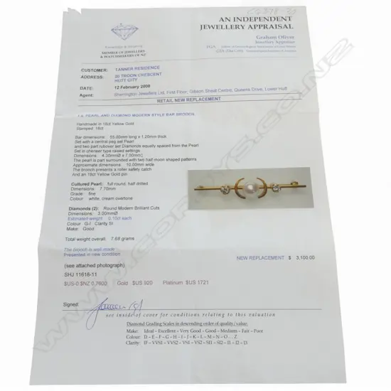 18ct PEARL & DIAMOND BAR BROOCH, 7.68gm