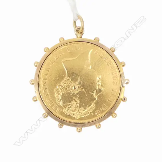 22ct gold George IV gold Two Pounds 1823 in 18ct gold spinner pendant mount 20gms total