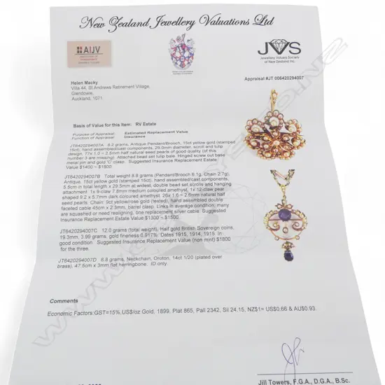 ANTIQUE 15CT AMETHYST PENDANT 6.1gms ON 9CT CHAIN L.450mm 2.7gms