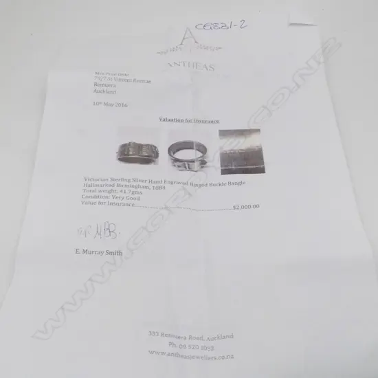 VICT. SILVER ENGRAVED HINGED BUCKLE BANGLE, BIRM. 1884, 41.77gms, valuation