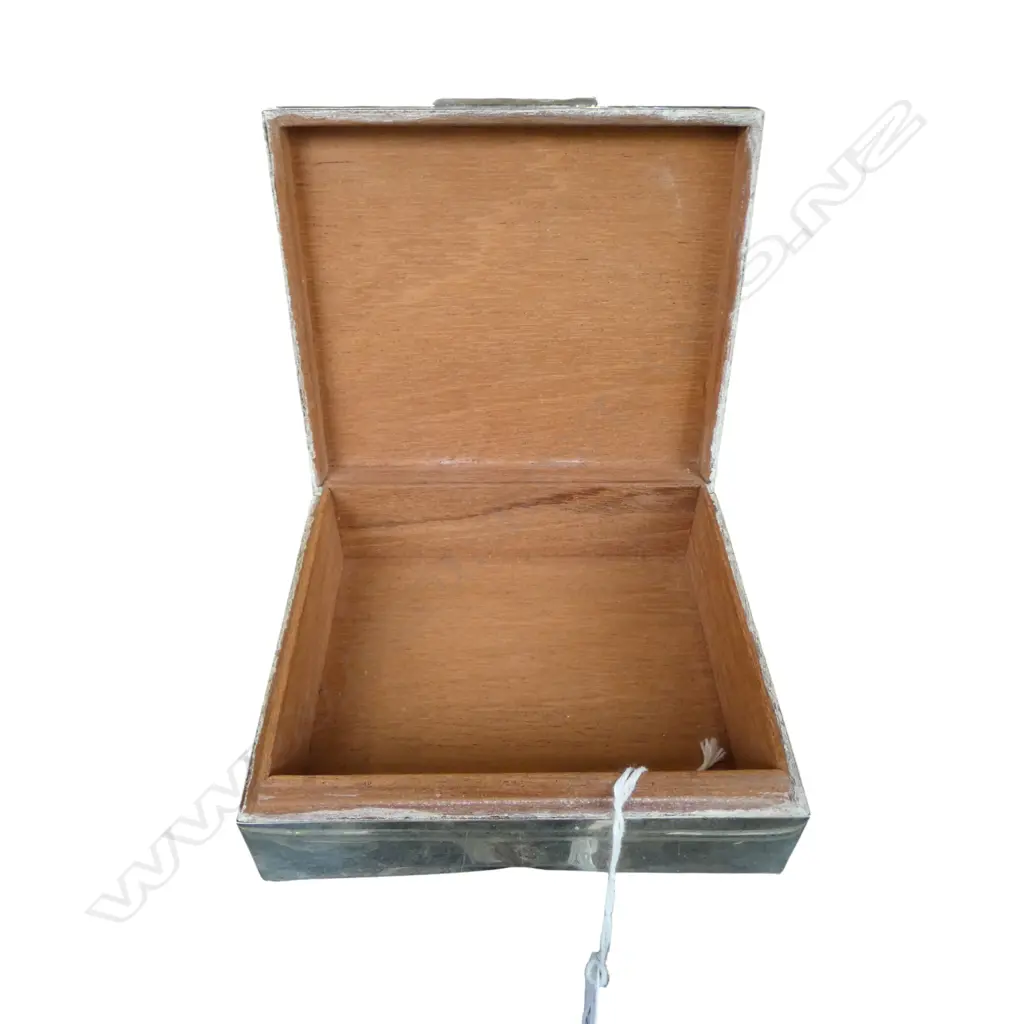 STG SILVER BOX with wood fitted interior, BIRMINGHAM 1969, TW 383gms dent