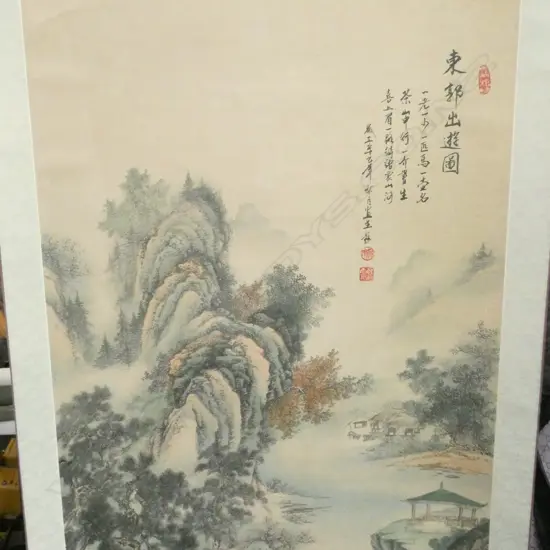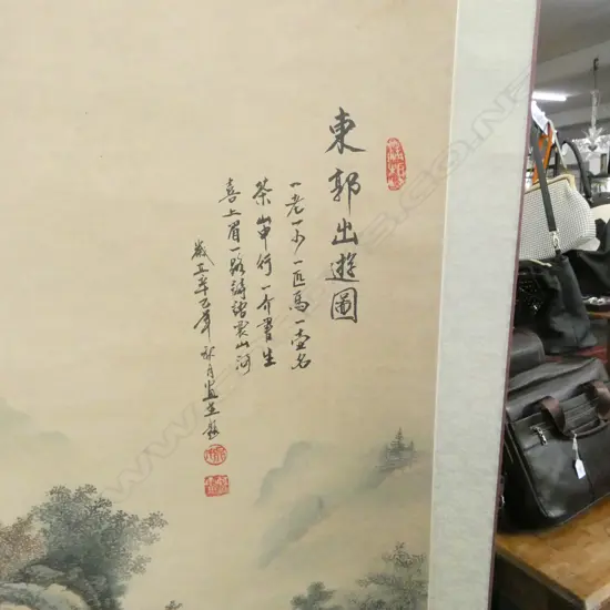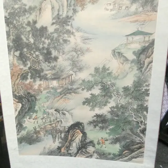 SIGNED VINTAGE CHINESE PAINTED SCROLL ON INK MOUNTAIN SCENE L1930 W720MM