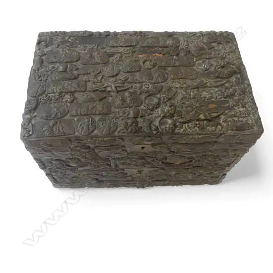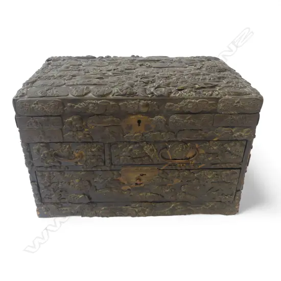OLD JAPANESE LACQUERED BOX w. APPLIED METAL DECORATION 290x180x190mm repairs