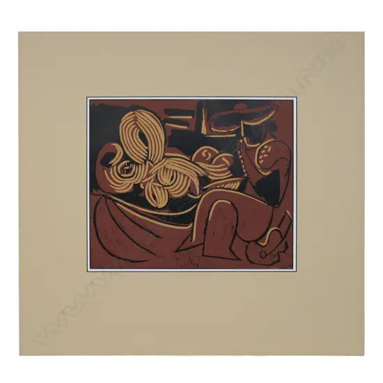 PABLO PICASSO/HARRY ABRAMS 'RECLINING WOMAN & PICADOR WITH GUITAR' (13), LINOCUT, c.1962, 270 x 325mm (image)