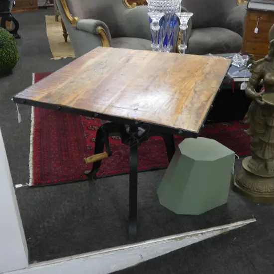 HEAVY WOOD & CAST IRON CRANK TOP TABLE