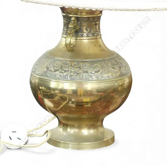 PR TABLE LAMPS; ORIENTAL BRASS BASES H.590mm