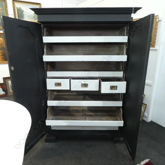 BLACK & WHITE PAINTED VICTORIAN CUPBOARD 1190x655x1765mm